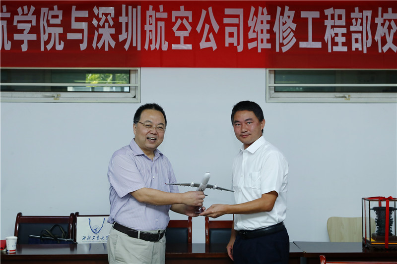 院长李玉龙教授与深圳航空有限责任公司维修工程部方文兵副总理签署了校企共建合作意向书。