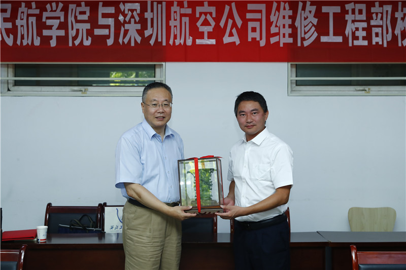 赠予深圳航空有限责任公司维修工程部“何尊”纪念品,方文兵代表深圳航空有限责任公司维修工程部赠送西工大德州牛仔游戏
