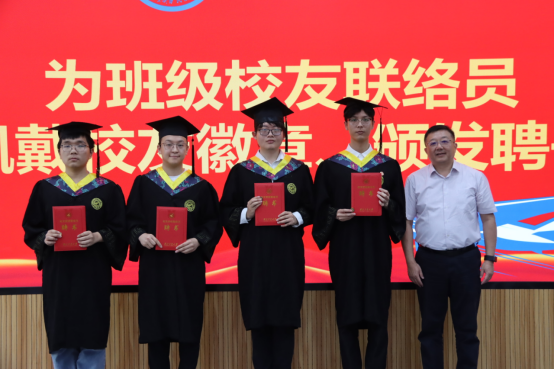 接着,民航研究院常务副院长李晨为各班级校友联络员佩戴校友徽章、颁发聘书。