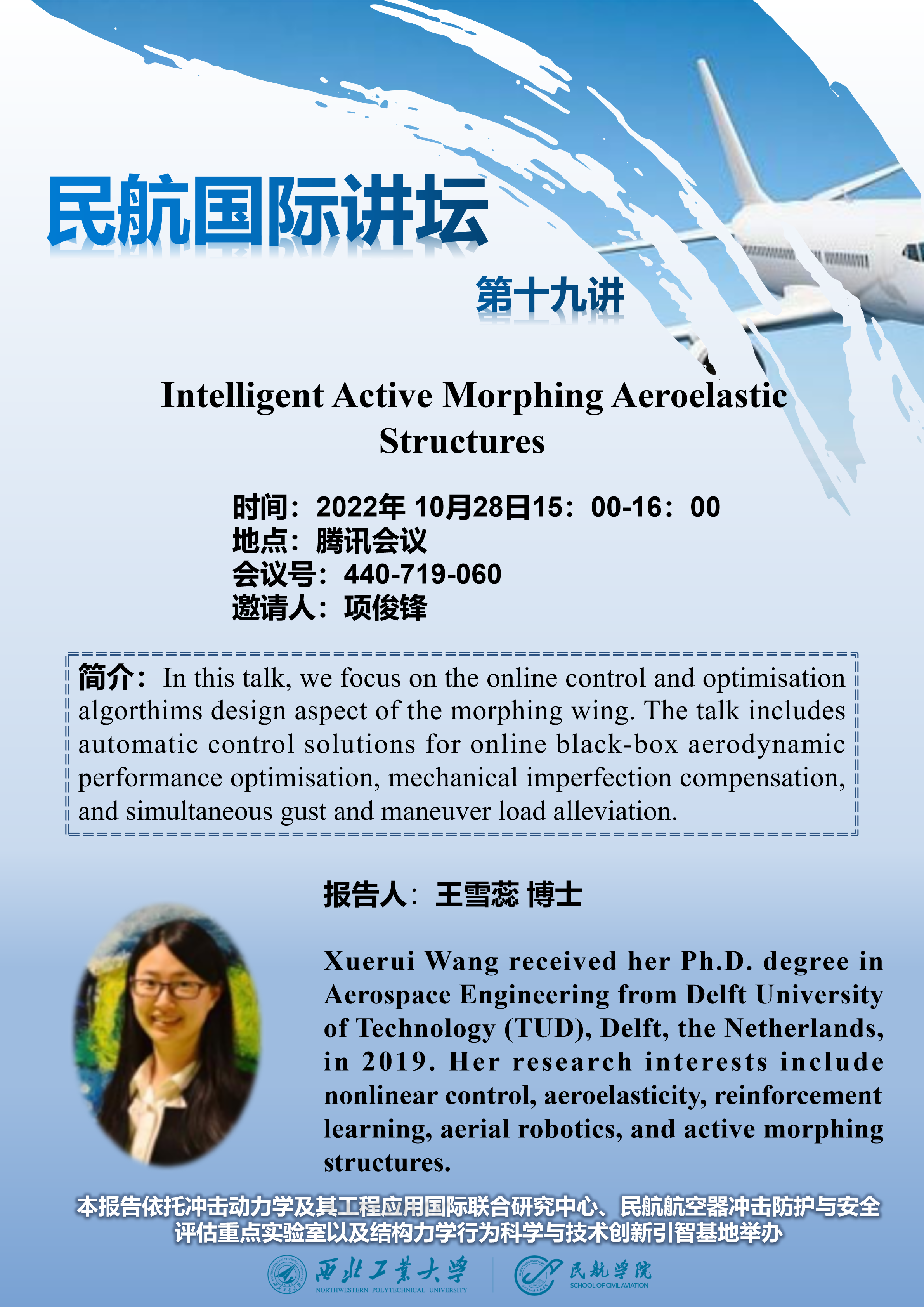 10月28号下午三点,德州牛仔游戏 拟线上举办“Intelligent Active Morphing Aeroelastic Structures”专题讲座,届时欢迎各位老师同学参会交流。以下是讲座详细信息: