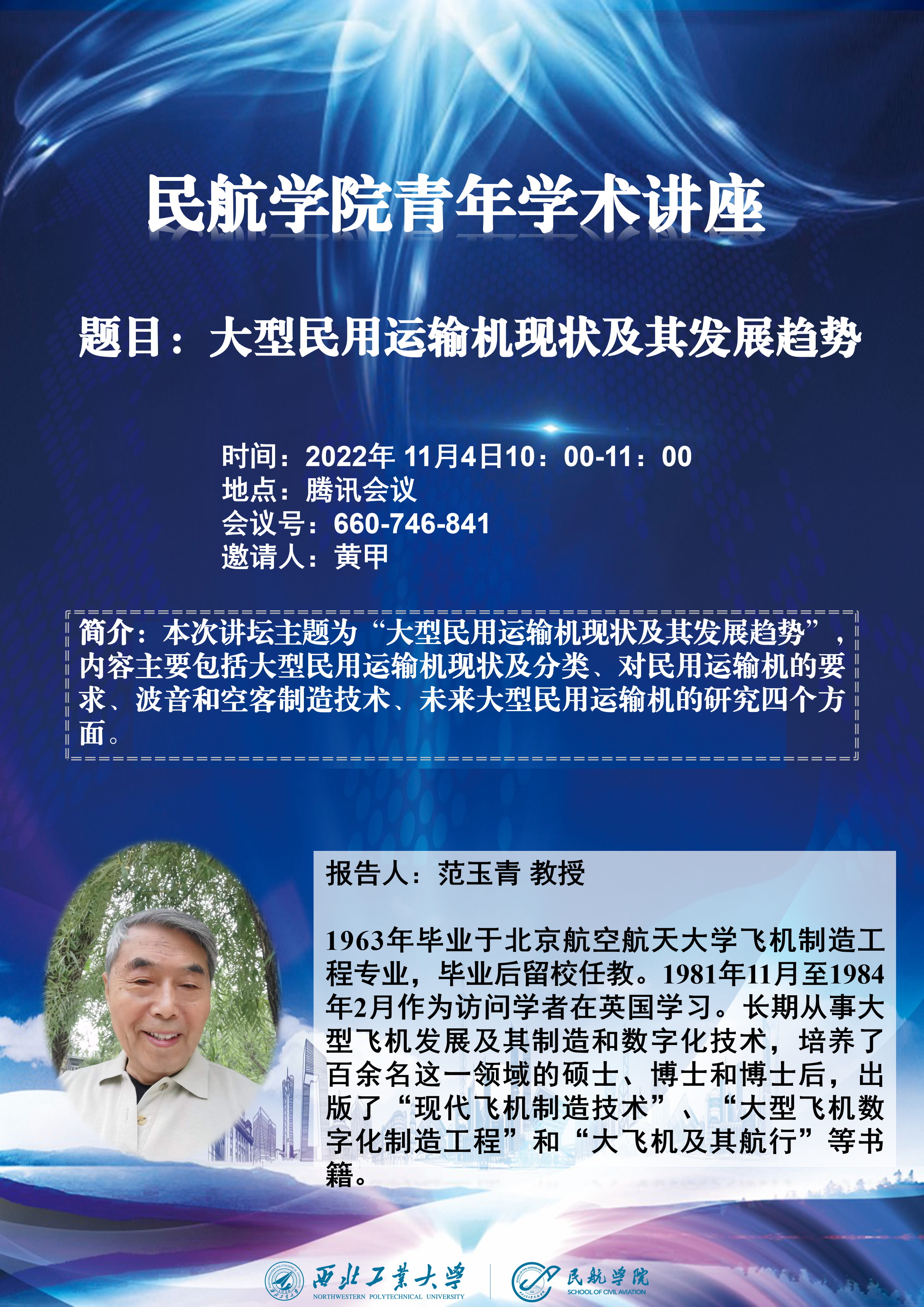 11月4日上午十点,德州牛仔游戏 拟线上举办“大型民用运输机现状及其发展趋势”专题讲座,届时欢迎各位老师同学参会交流。以下是讲座详细信息: