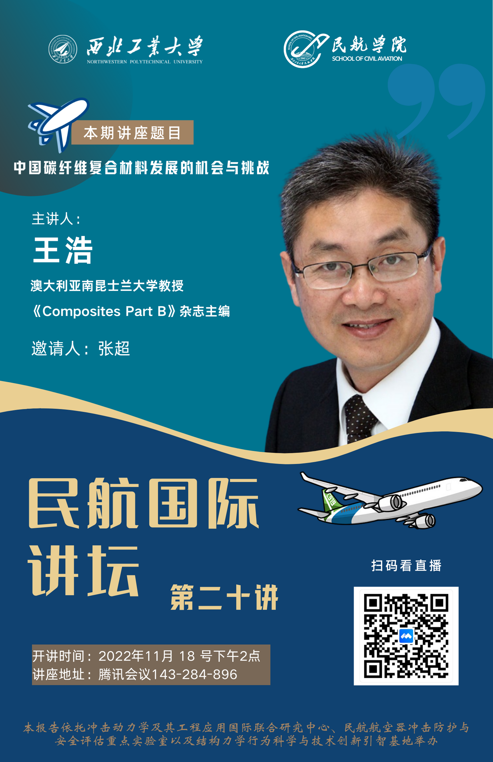 拟线上举办“中国碳纤维复合材料发展的机会与挑战”专题讲座,届时欢迎各位老师同学参会交流。以下是讲座详细信息:
