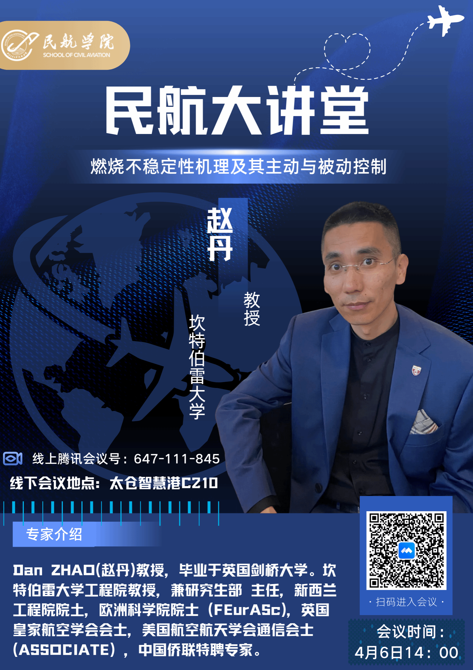 Dan ZHAO(赵丹)教授,毕业于英国剑桥大学。坎特伯雷大学工程院教授,兼研究生部主任,新西兰工程院院土,欧洲科德州牛仔游戏 院士 (FEurASc),英国皇家航空学会会士,美国航空航天学会通信会士(ASSOCIATE),中国侨联特聘专家。