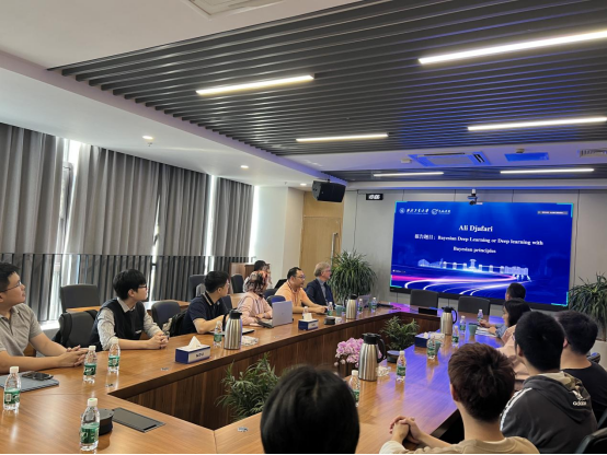 与会的学者和学生互相交流了各自的研究方向及相关工作进展,并围绕贝叶斯深度学习先验分布的选择、ROSI算法的计算速度提升、CFD计算与阵列信号处理结合、工业风机故障诊断等具体方向展开了深入的交流。另外,余亮教授邀请与会人员参观了西北工业大学太仓智慧港的实验室,双方就实验室的设备条件探讨了未来的合作可行性,期待能够进一步加强交流,多调研、多互访、共进步,通过资源共享,达成优势互补。