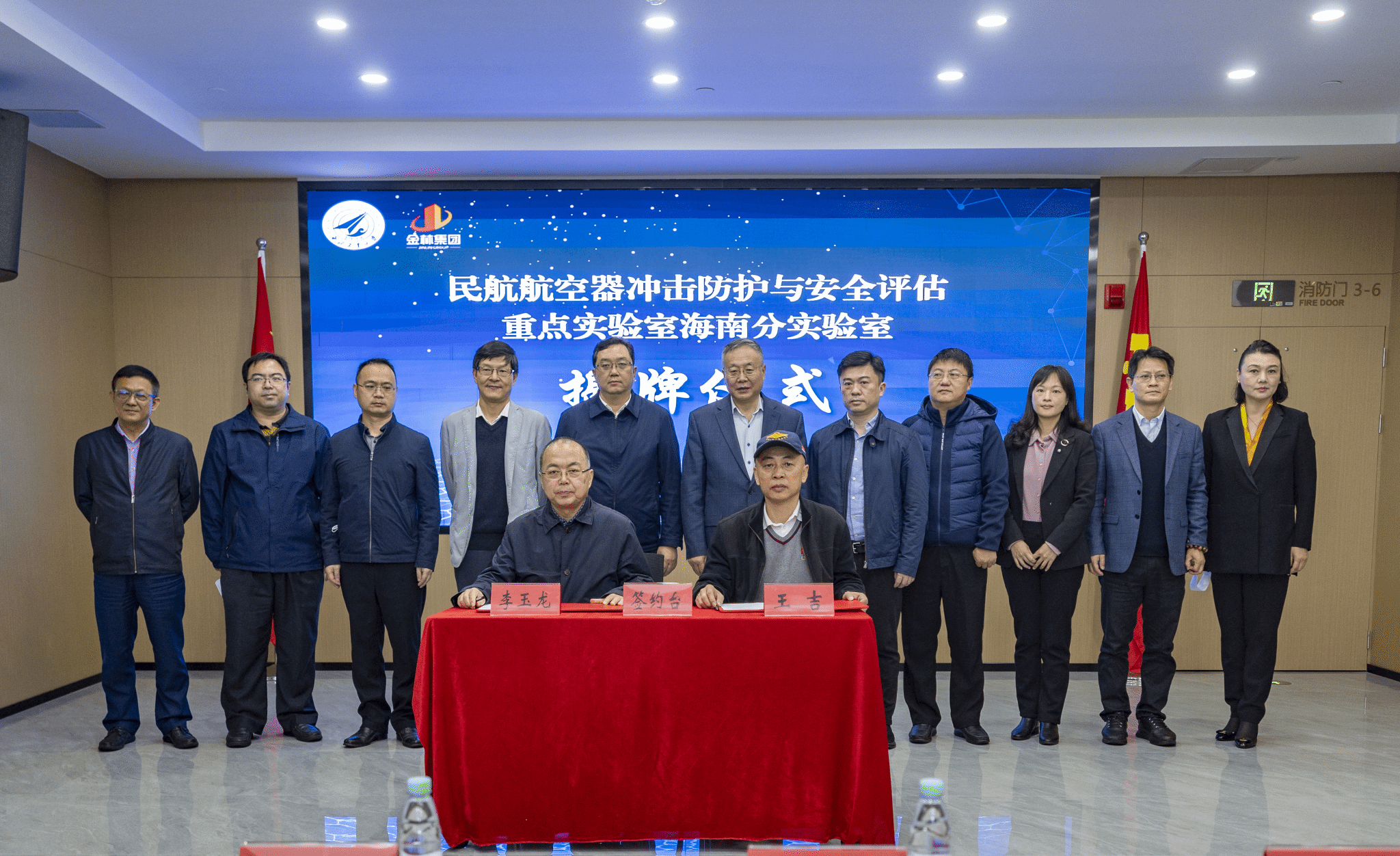 院长李玉龙和海南金林集团董事长王吉代表双方签订了共建联合实验室合作协议,西北工业大学党委副书记万小朋和海南省国资委党委书记马咏华为“民航重点实验室海南分实验室”揭牌。