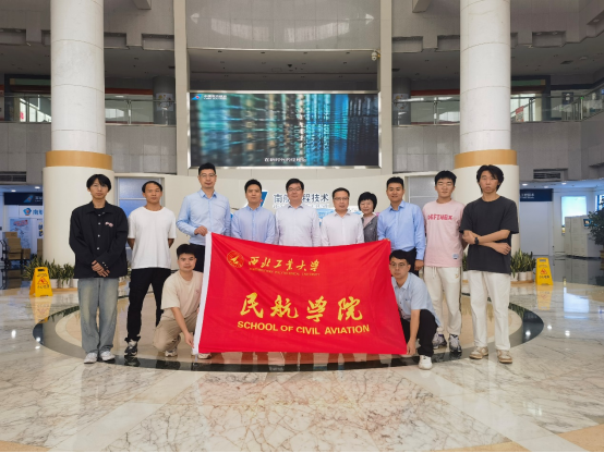 实践队一行来到中国南方航空股份有限公司工程技术分公司(以下称“南航工程技术分公司”)进行参观交流。南航工程技术分公司科技信息管理部经理彭远、人力资源部副经理李昭宇热烈欢迎师生一行来访。
