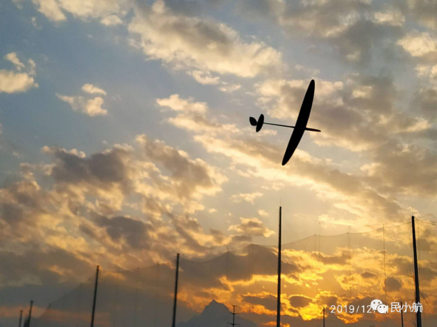 这两幅图片的分别是在清晨拍摄的两架模型飞机。航模队飞手在清晨训练,虽然比较辛苦,但是清晨的美景让人心情舒畅,看见自己制作的飞机翱翔于蓝天,有一种自由的感觉。在训练之余,不忘给自己的“战友”来张特写,留个纪念。