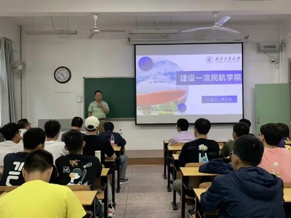 党总支书记谢发勤与长安校区本科新生进行了新生见面会、讲授思政课、做院史院情况报告。