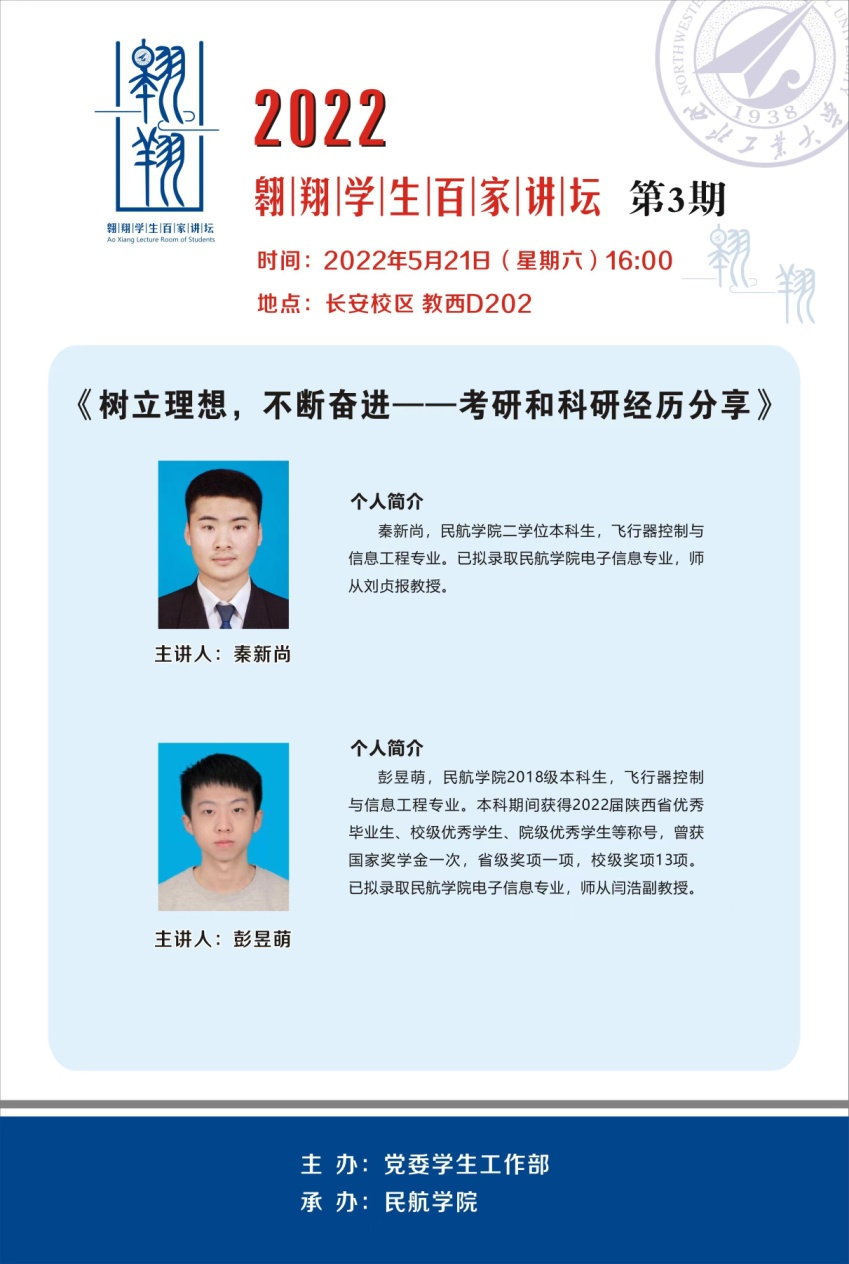 开展翱翔学生百家讲坛活动,邀请2022届本科毕业生代表彭昱萌、秦新尚做考研和科研经验交流分享。活动由辅导员吴宇主持,德州牛仔游戏
