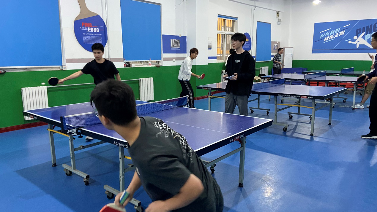 研究生会组织开展“破冰活动”系列之一的乒乓球赛。