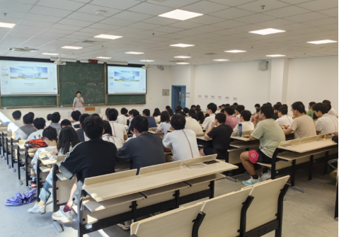 党总支副书记袁源给学生做动员讲座,并邀请3位嘉宾给学生做就业指导和招聘宣讲。