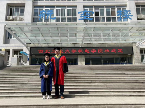 萨米亚说,今年是自己来到中国的第九年,也是到西工大求学的第七年,七年时光转瞬而过,但在西工大求学期间的点点滴滴却让她时刻铭记,在这七年里,她曾获得本科优秀毕业论文,在硕士研究生求学期间,针对基于PRSEUS的翼身融合布局民机机翼结构,开展了有限元建模、静力学分析和损伤预测分析等研究工作,在《International Journal of Aerospace Engineering》《Aerospace》等国际期刊上发表了2篇学术论文,为翼身融合布局民机机翼结构损伤容限设计提供了有力技术支撑。当然,获得如此多优秀成果的背后离不开高压力与高强度的工作和学习,也会时常因为研究进展汇报而头皮发麻。但每当此时,她的导师张永杰老师总会耐心开导,张老师曾对她说过“三分天注定,七分靠打拼,爱拼才会赢。”这句话她便时常铭记在心,正是这句话不断激励她,以努力上进的心态在攻读硕士研究生期间一天天地成长,一天天的蜕变。她表示:“近三年的硕士生涯伴随我走过三航之路,三千天的工大点滴烙印下了我的‘三实一新’。”
