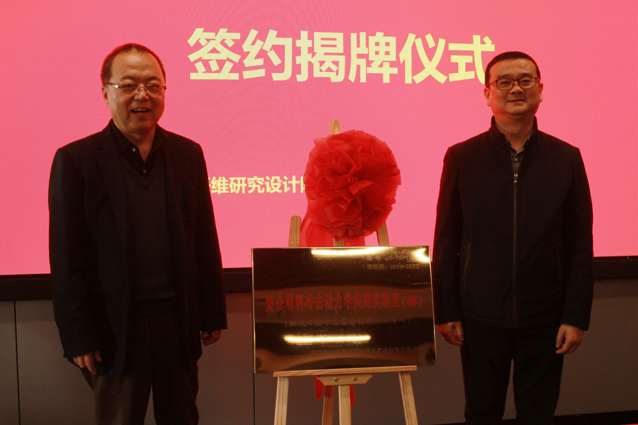 德州牛仔游戏 院长李玉龙和南京玻纤院院长王屹为“复合材料冲击动力学共建实验室”揭牌。