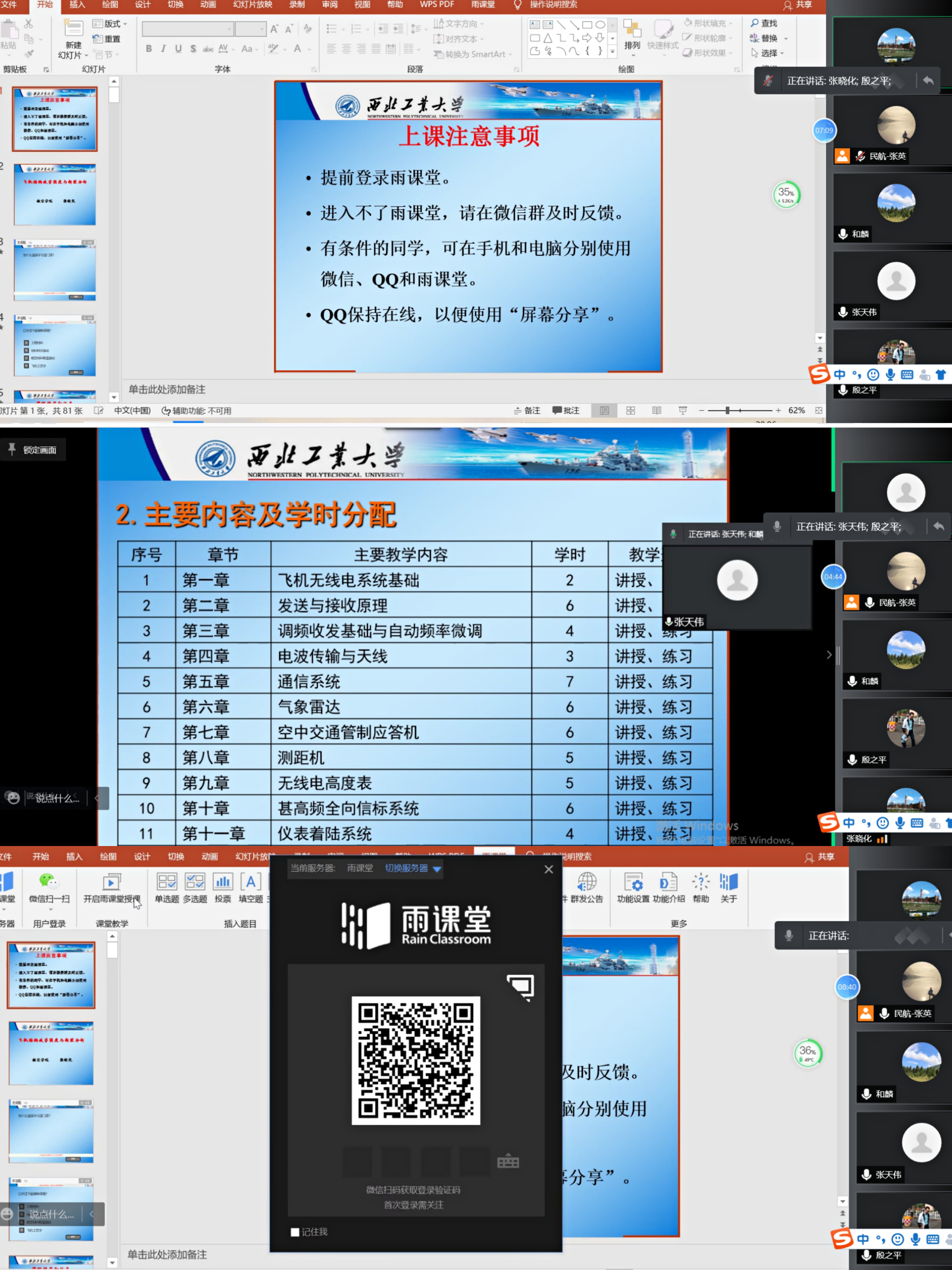 教学运行会议的通知,已经有了初步的准备,每位老师按照顺序介绍了各自课前准备情况以及在线演示课件使用情况,保证了在线教学过程中软硬件工具运行畅通、视频音频播放清晰度的问题。