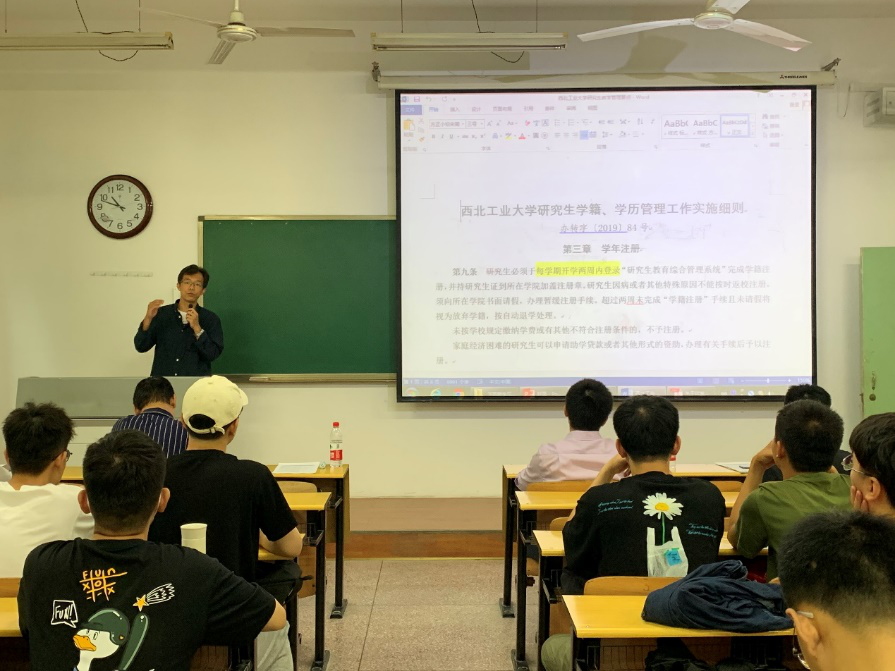 张晓化着重解读了《西北工业大学研究生培养手册》中的部分制度规定和培养过程中需要特别注意的相关事项。